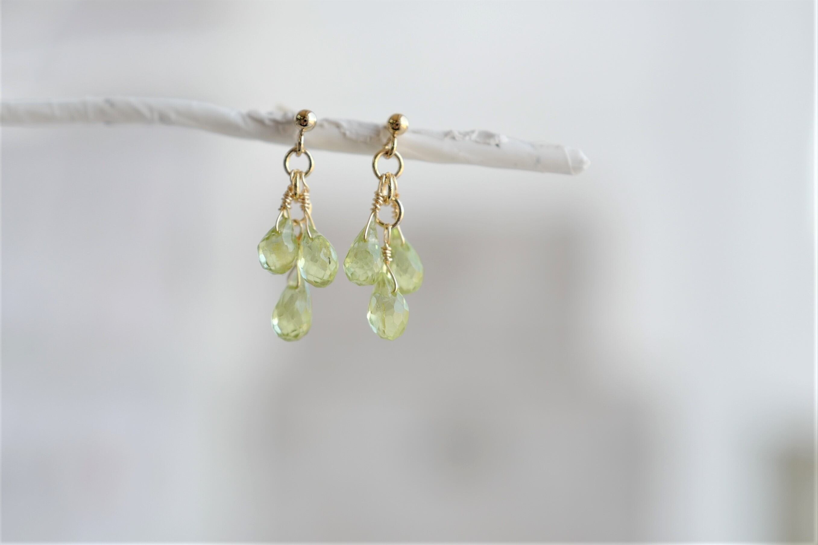 爽やかなライムグリーンが特徴的な「ペリドット」に耳飾りです