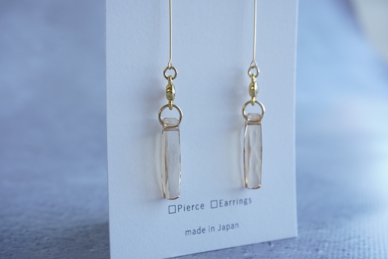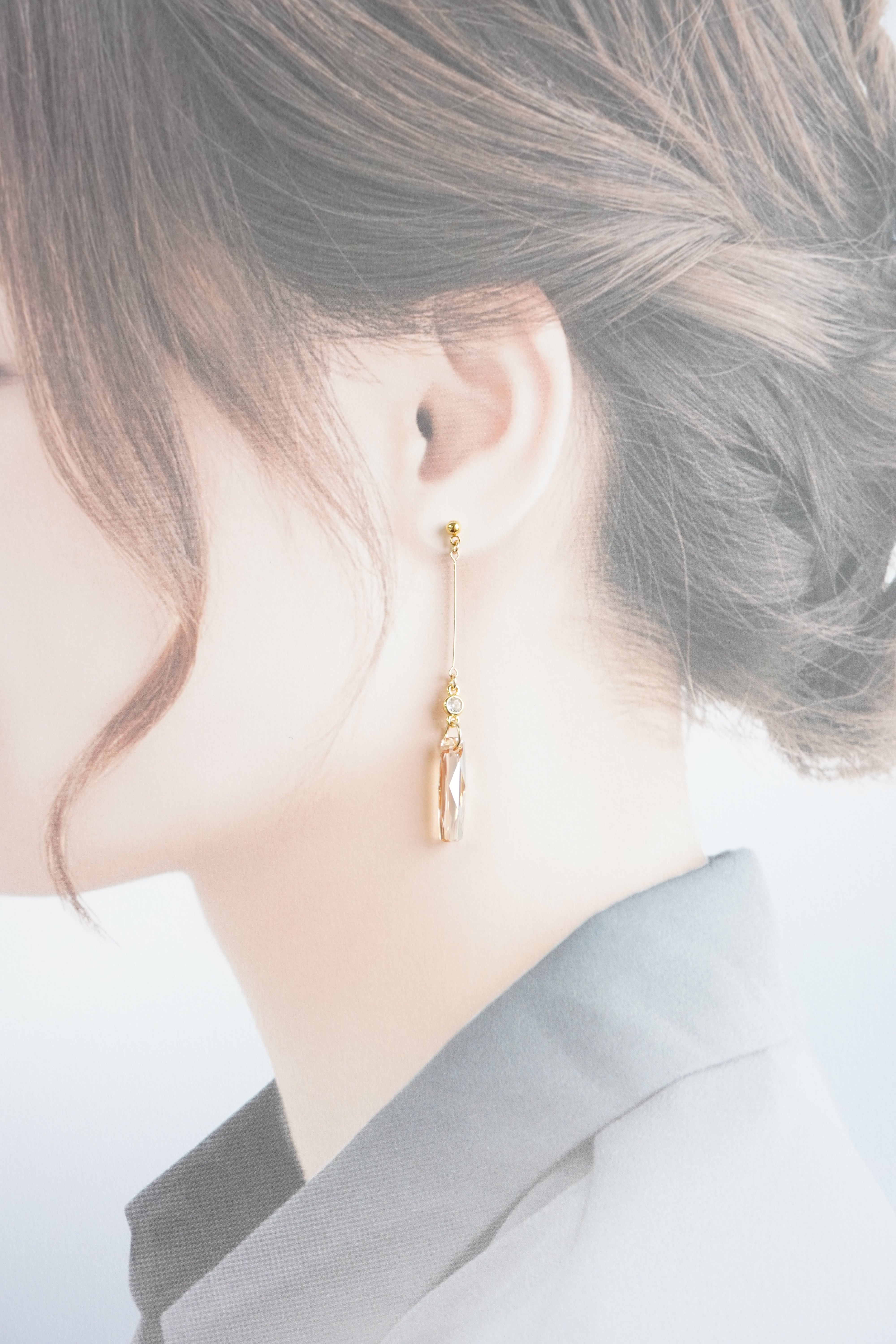 上質なクリスタルのスティックを贅沢な耳飾りにしました