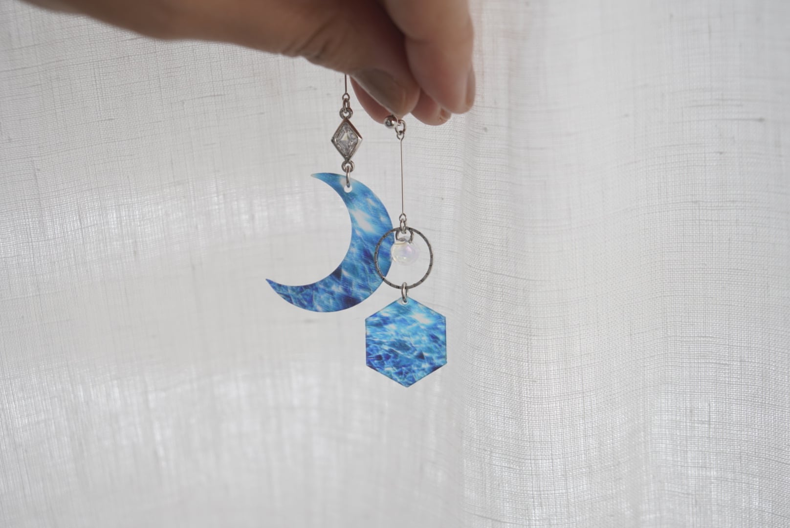 三日月 六角形 幾何学 海 波 青 月 結晶